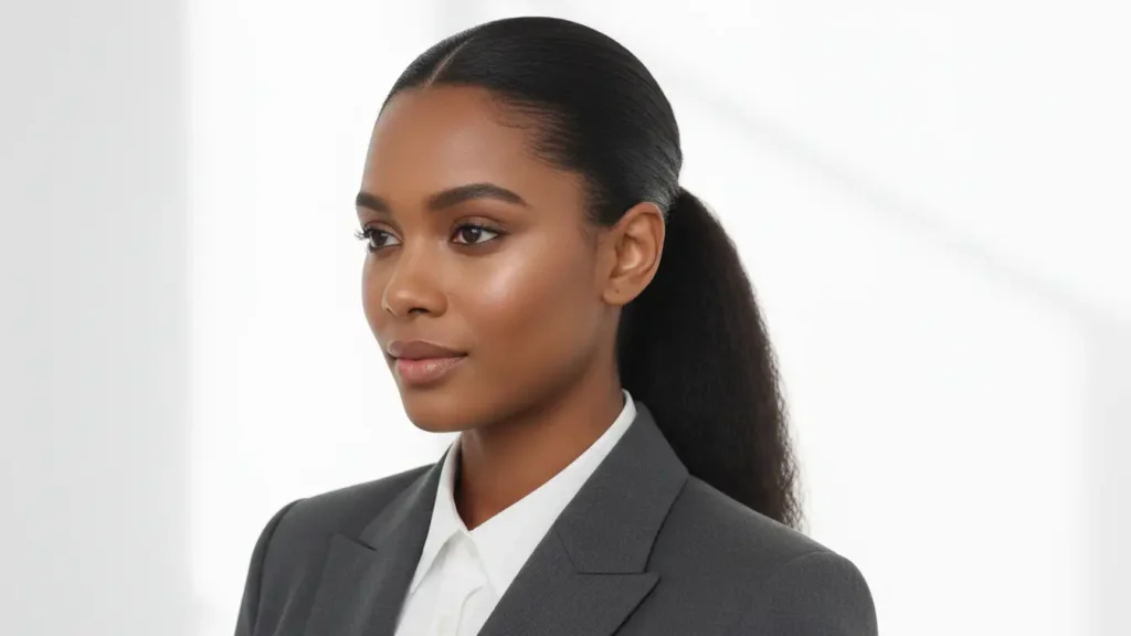 For a timeless, elegant look, wear your hair long and straight with a deep side part. This elongates the face and creates a sleek silhouette. Perfect for formal occasions or professional settings.