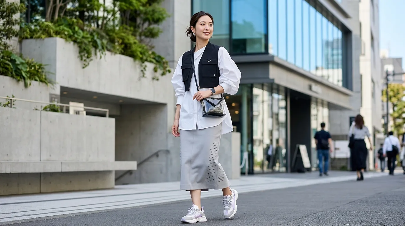 What I find interesting about this look is how gender-neutral it feels. It’s not overly feminine, not overly sporty — it just sits in that cool, contemporary middle ground.