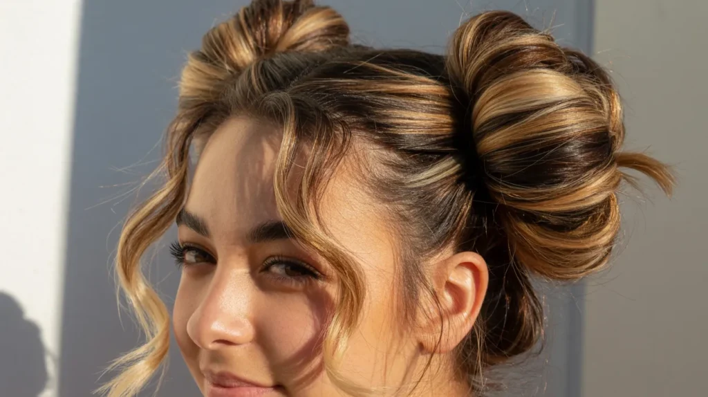If you have highlights or balayage, space buns show them off beautifully. The buns create dimension that really highlights different tones in your hair.