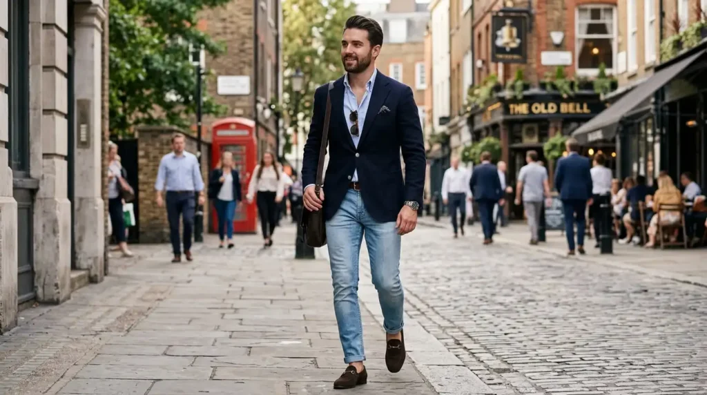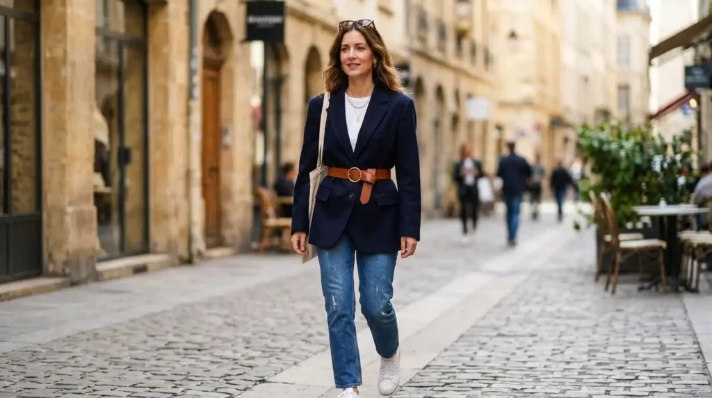 Navy Blazer + Light Denim (The “Dark Blazer Done Right” Formula)