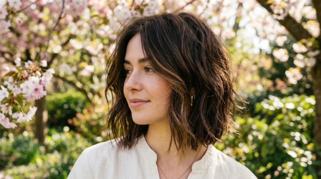 For spring specifically, this cut adapts beautifully to changing humidity levels. Where a polished blowout might frizz and lose its shape, this texture-forward cut actually improves with a little spring air. That’s a practical advantage that shouldn’t be underestimated.