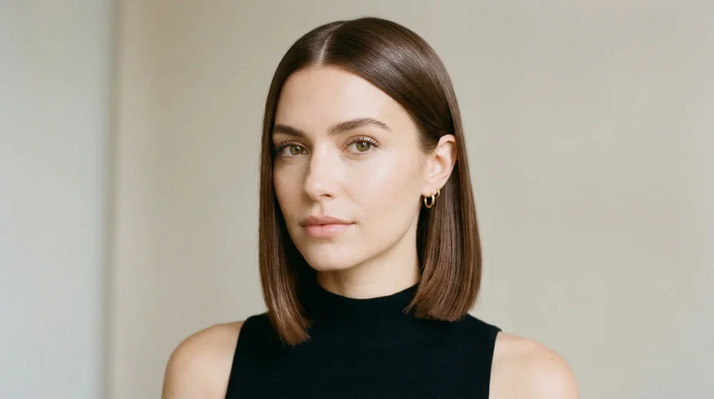 The mirror-like finish requires a heat protectant before flat ironing and a lightweight shine serum focused on the ends afterward. Precision cuts like this need trims every five to six weeks to preserve the structure. The beauty lies in its exactness. Neglect it slightly and it loses its entire character. Maintain it properly and it looks extraordinary.