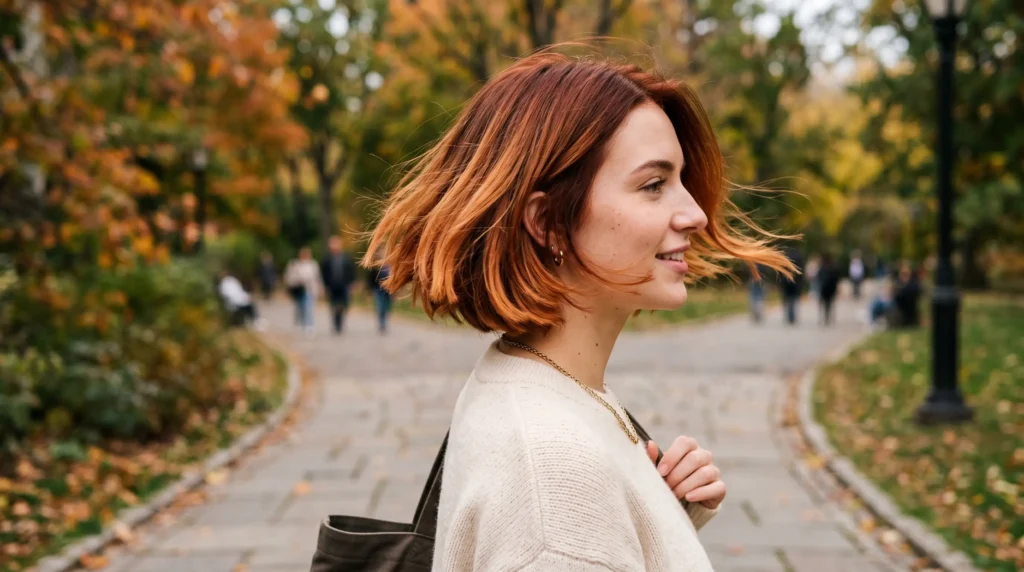 It’s the kind of color that doesn’t shout for attention. But when sunlight hits the strands just right, the warmth becomes impossible to ignore. That’s a very specific and very good quality in a seasonal color.