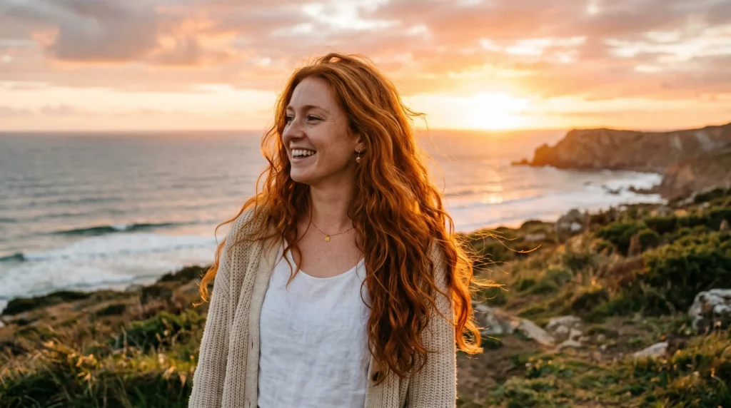 Copper never truly leaves the trend conversation, but the 2026 version feels softer and more dimensional than previous seasons. This warm hair color for spring sits between warm cinnamon and golden ginger, layered through long flowing waves. The richness of the shade gives the hair a naturally glossy look — almost like the sun is living inside it.