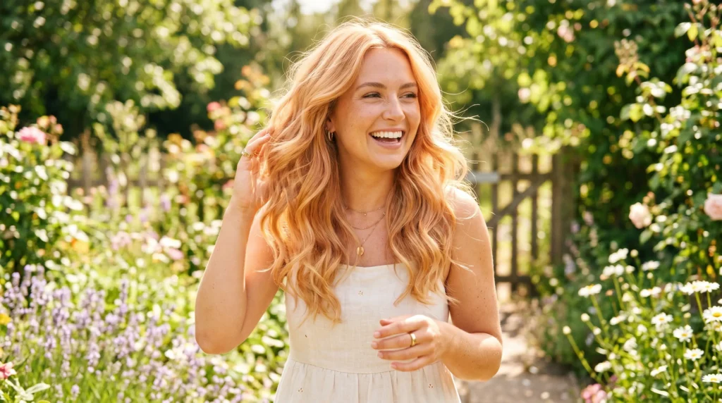 | Golden Apricot Blonde | Color + balayage | Warm, medium | Vacation & glowing |