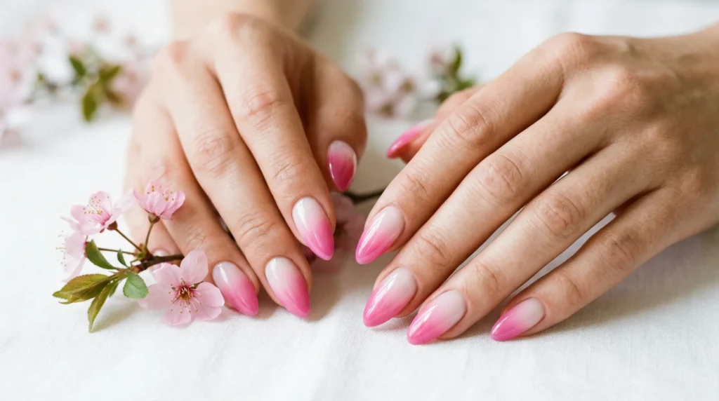 In my experience, this is the spring nail design I choose when I want something romantic but still bold. It catches the light, it elongates the fingers, and it feels effortlessly feminine. If you’ve been hesitating about trying ombre, this is the version worth starting with.