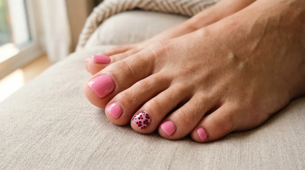 No art. No embellishment. Just the most vibrant fuchsia pink you can find, applied glossy and clean. And honestly? Sometimes that’s all a pedicure needs to be.