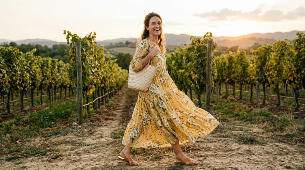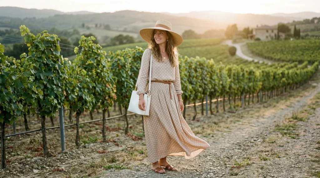 Before we get into the looks, let’s talk about what actually matters when dressing for a vineyard day. Because “winery outfit” isn’t just about aesthetics — it’s about function meeting style.