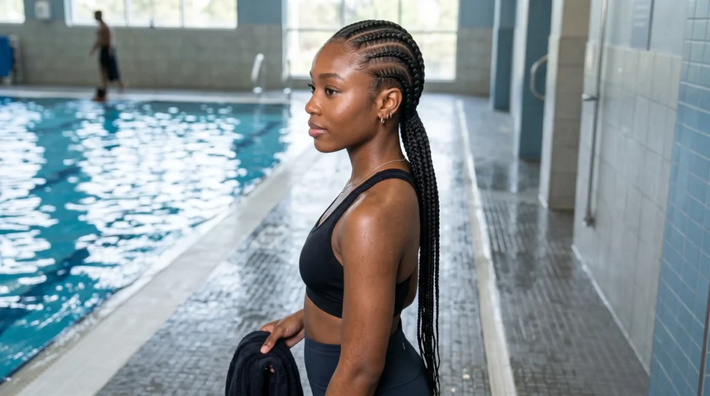 • Cornrows for swimming — lie flat against the scalp, dry quickly, and provide the strongest protection of all braid styles