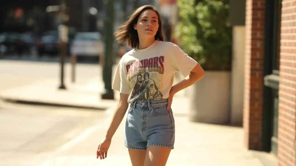 | Graphic Tee + High-Waist Shorts | Casual elevated | City outings | Small crossbody | Very low |