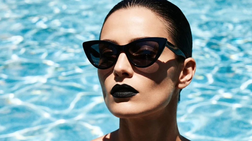 | Sleek Black Cat-Eye by the Water | Sharp cat-eye black | Round, square | Editorial & powerful |