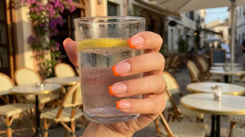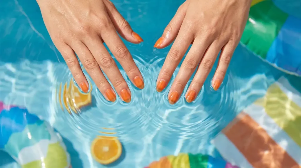 This is where tangerine nails for summer truly shine. Go bold with glossy finishes, fun designs, or longer lengths. Nobody’s judging your beach mani.