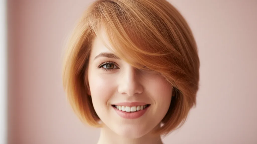 Strawberry blonde is seriously underrated. This vibrant, peachy-pink tone adds so much brightness and warmth around your face. The side-swept bangs give the 90s bixie cut that effortlessly cool, retro feel while flattering your features.