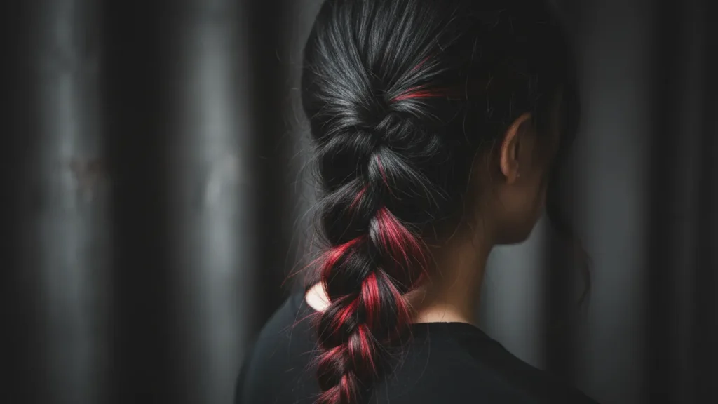 The contrast between black and purple creates an almost mystical effect. What I love about this two toned hair idea is how the purple peeks through when you move—it’s like a surprise pop of color that never gets boring.