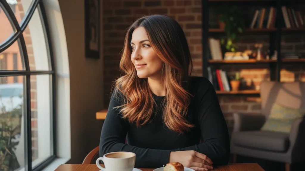 The classic combo done right. Strategic blonde pieces framing a brunette base brighten your face and add dimension without requiring all-over color. It’s like contouring for your hair.