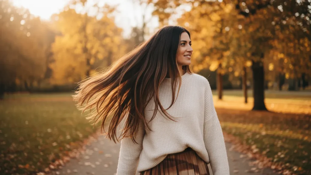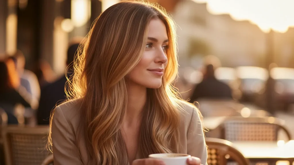 Golden brown hair with buttery highlights is having a major moment. It’s warm without being orange, bright without being too light, and works beautifully with most skin tones. The subtle variation creates movement that makes thin hair look thicker.