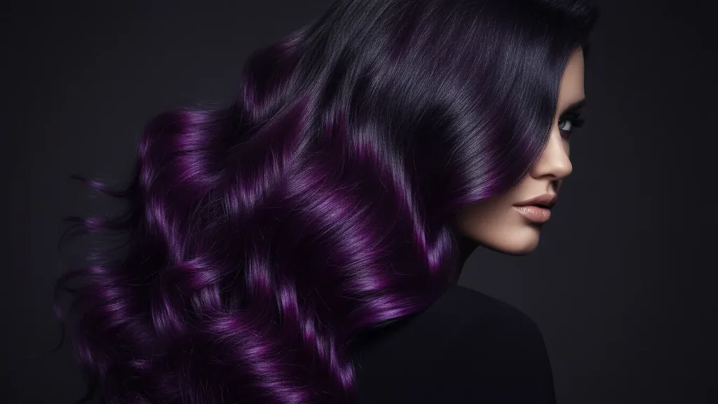 For a sultry, mysterious vibe. The purple tones add just enough dimension while keeping everything dark and sophisticated. This works especially well on wavy or layered cuts where the color variation shows through different layers.
