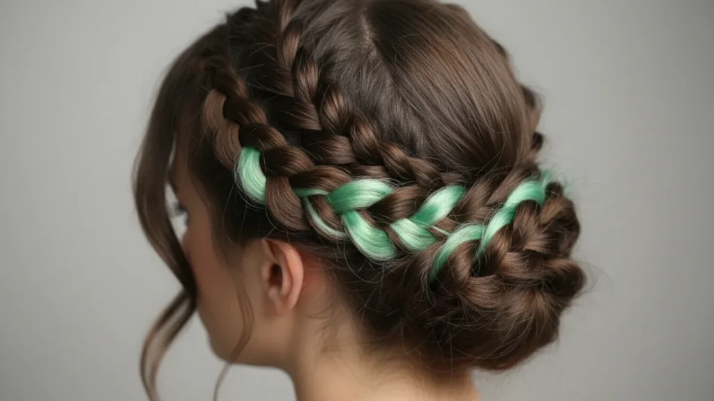 For subtle playfulness. Mint green hidden under brown hair creates unexpected pops of color that’s fun without being overwhelming. Shows best when hair is styled up or braided.