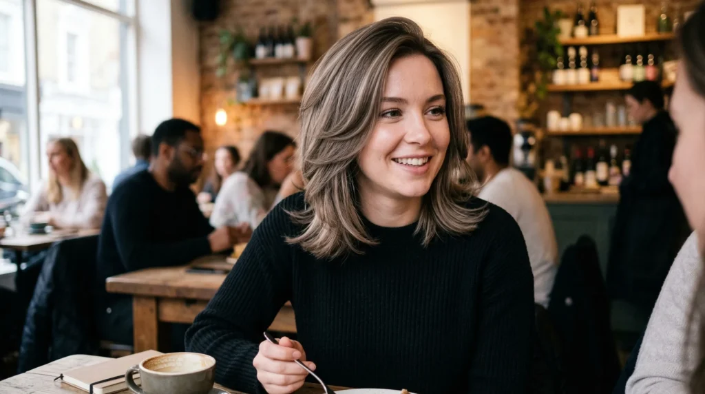 In my experience, switching from warm tones to mushroom brown can feel surprisingly refreshing. It changes your whole color palette — suddenly cool grays, soft creams, and dusty pinks look fresher against your face. If you’ve been loyal to warm brunette for years, this cool shift is worth considering.