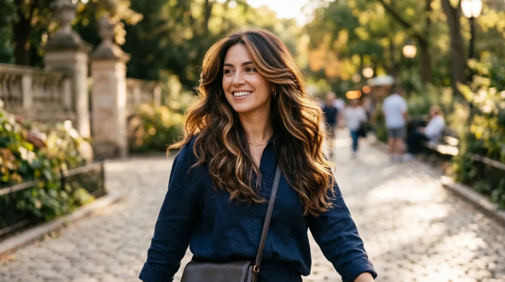 What I love about this look is how it bridges the gap between brunette and bronde. You’re not committing to going lighter — you’re just letting warmth in strategically. It’s a perfect option if you’ve been saving blonde inspiration photos but aren’t ready to fully commit. Think of it as brunette with ambition.