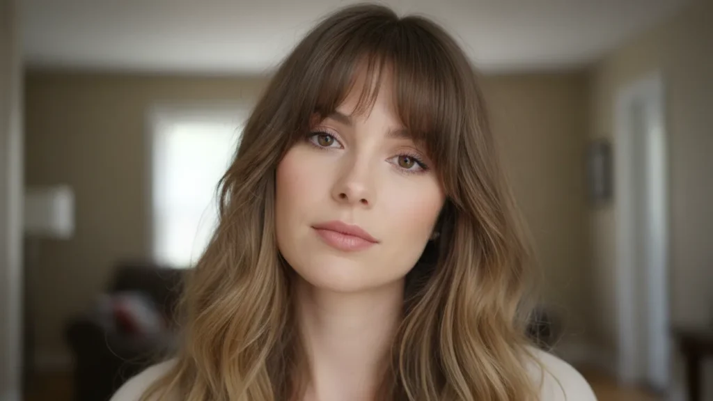 The beauty of curtain bangs is they grow out gracefully. Unlike blunt bangs that require constant trims, these blend into your layers as they get longer. Style them by blow-drying them away from your face with a round brush, then let the rest of your hair do its wavy thing naturally.