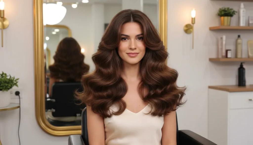 If you’re into medium wavy hairstyles that scream confidence, this bouncy blowout is calling your name. The soft, full waves frame your face beautifully and give off serious “just left the salon” energy.
