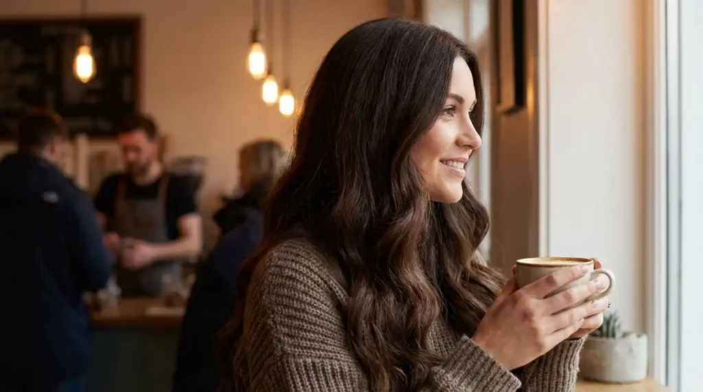 Dark espresso brown with soft waves creates that “just left a fancy coffee shop” vibe.