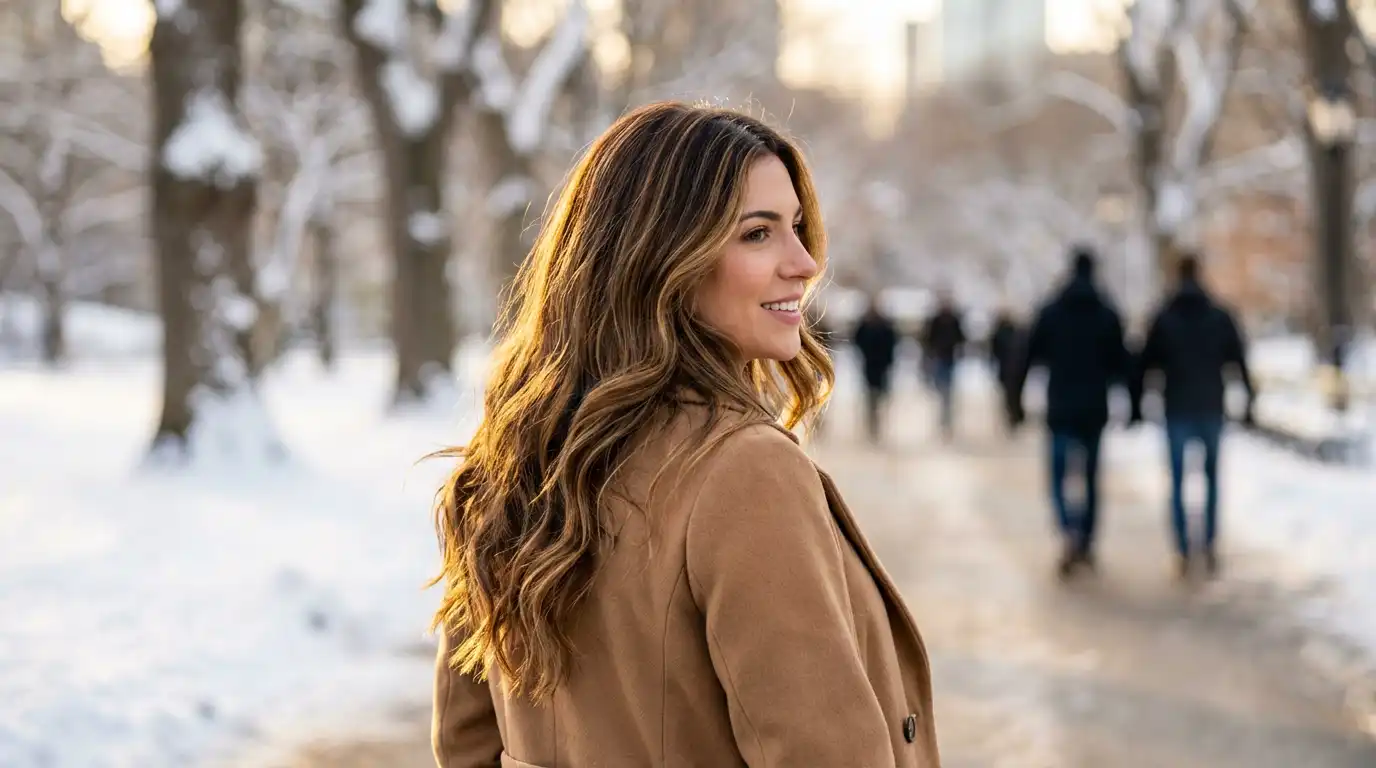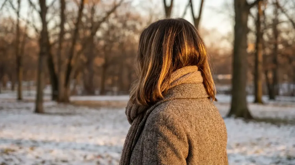 Rich colors look better in winter light. Deep browns, burgundies, and cool-toned blondes just hit different when you’re not competing with bright sunshine. Indoor lighting and gray winter skies actually enhance these tones.