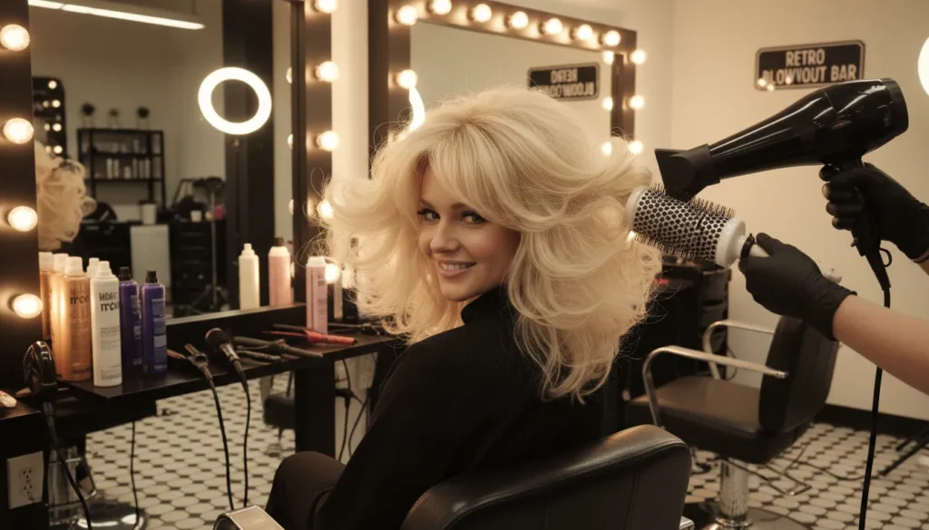 Now here’s where it gets fun. This style is a conscious nod to the blowout glamour of the early 2000s — but updated and genuinely wearable for right now. The buttercream blonde layers are flipped at the shoulders with that nostalgic blowout volume that’s been all over TikTok and salon feeds this year.
