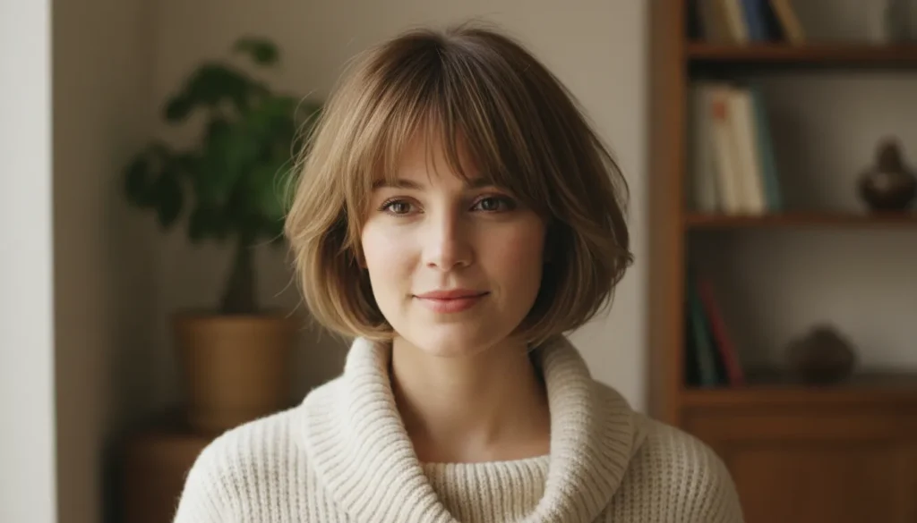 6. Soft Cropped Bob with Gentle Fringe — A Little Parisian, A Lot Effortless