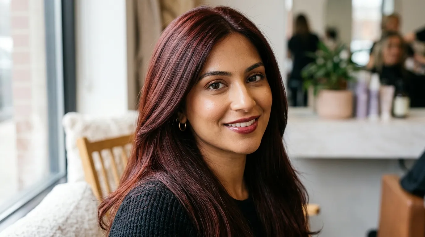 In my experience, this shade genuinely suits everyone from fair skin to deep complexions. The cool undertones balance warm and neutral skin equally well. Ask your stylist for a deep brunette base with cherry-toned lowlights and a violet gloss finish. Simple, stunning, and surprisingly low maintenance.