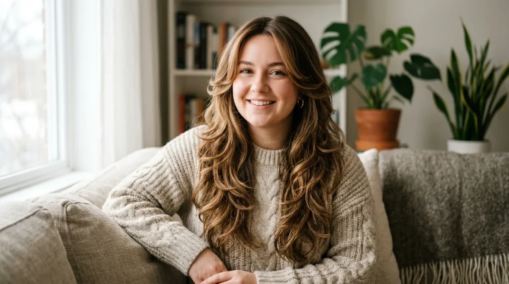 Sometimes the simplest answer is the right one. If you have long hair and a round face, keeping that length — and adding soft, blended layers throughout — is one of the most effortlessly flattering things you can do. Long layers past the shoulders draw the eye downward and create a visual vertical line that instantly lengthens the face. This is one of those trendy winter hairstyles 2025–2026 that looks like you’re barely trying, while doing a lot of heavy lifting for your face shape.