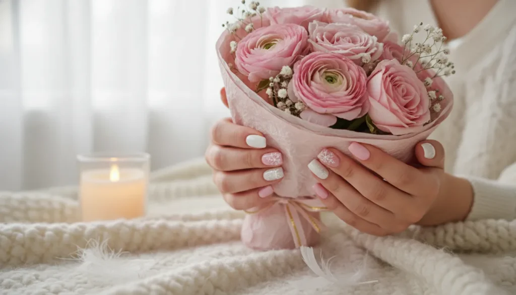 The overall vibe this season? Soft French tips, cozy neutrals, and delicate details that feel intentional rather than overdone. Perfect for subtle winter style with just a touch of magic.
